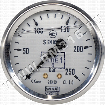 Купить 213.53.063 манометр гидравлический 63 мм, 0 - 250 бар, осевое (по центру сзади) присоединение (wika, германия)