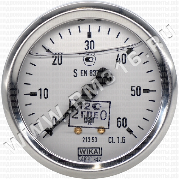 Купить 213.53.063 манометр гидравлический 63 мм, 0 - 60 бар, осевое (по центру сзади) присоединение (wika, германия)