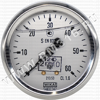 - Градуировка шкалы: 0...60 бар- Корпус: нержавеющая сталь
