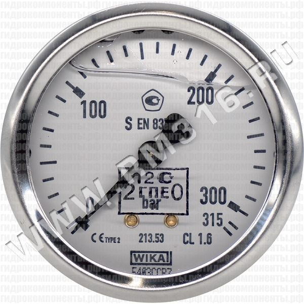 Купить 213.53.063 манометр гидравлический 63 мм, 0 - 315 бар, осевое (по центру сзади) присоединение (wika, германия)
