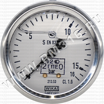 Купить 213.53.063 манометр гидравлический 63 мм, 0 - 16 бар, осевое (по центру сзади) присоединение (wika, германия)