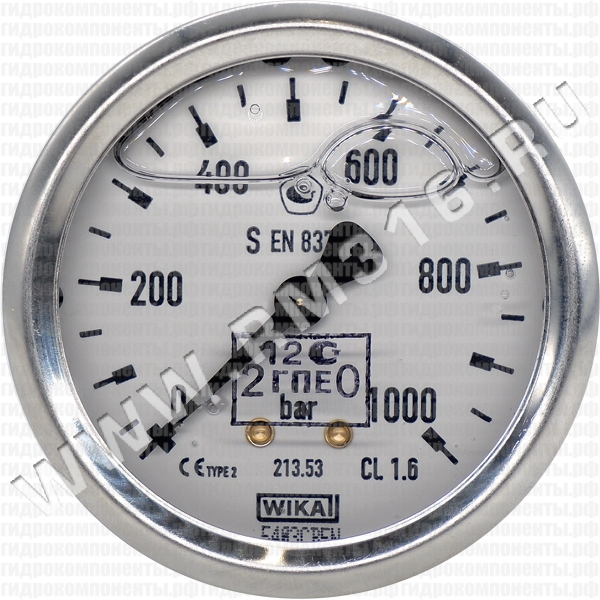Купить 213.53.063 манометр гидравлический 63 мм, 0 - 1000 бар, осевое (по центру сзади) присоединение (wika, германия)