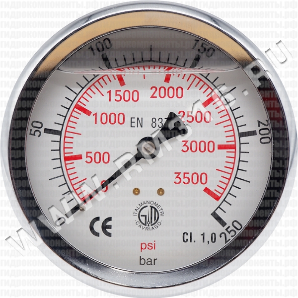 M108PBL0250 | M108PBL0250 Манометр гидравлический виброустойчивый (глицериновый), 0-250 бар, 0-3500 psi, диаметр 100 мм, резьба 1/2" BSP, осевое присоединение (сзади), без первичной поверки (Italmanometri, Италия) | 18 002 руб | 7 |