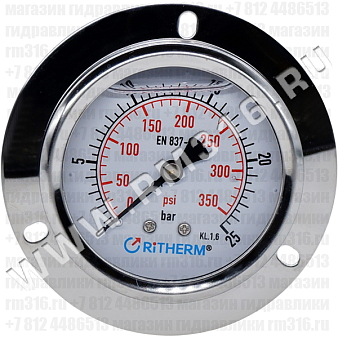 Купить манометр гидравлический 63 мм, 0 - 25 бар / 0 - 350 psi, фланцевое присоединение (ritherm, китай)