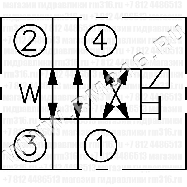 При снятом напряжении LSV2-10-4CO-M соединяет каналы (3) - (2) и (4) - (1). При подаче напряжения на электромагнитную катушку гидроклапан соединяет каналы (3) - (4) и (2) - (1).