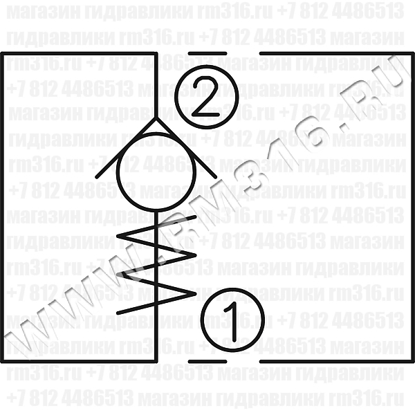 LCVR-10-P обеспечивает прохождение потока от порта (2) к порту (1), при этом блокируя поток масла в обратном направлении. Жидкость не поступает в порт (1), пока в порту (2) не будет создано давление, достаточное для преодоления давления настройки пружины (давления открытия).