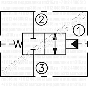 В нейтральном положении клапан перекрывает поток от порта (2) к порту (3). Пружинная камера выводится в атмосферу "v", которая имеет внутреннее кольцевое уплотнение от проточных каналов картриджа. По сигналу дистанционного пилота на порте 1 золотник клапана смещается, обеспечивая двунаправленный поток из портов (2) в (3). Благодаря вентилируемой пружинной камере картридж может находиться под полным давлением на любом порте без изменения требуемого пилотного давления.