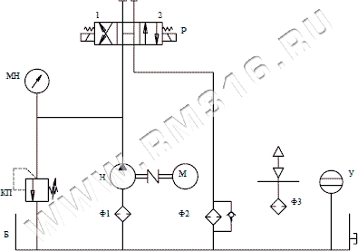 Обозначения на гидросхеме: