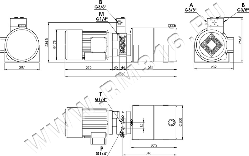 Габаритно-присоединительные размеры маслостанции: