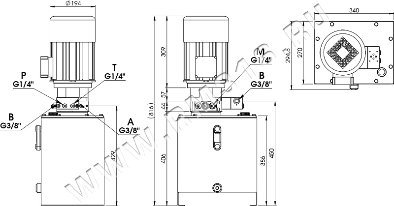 Габаритно-присоединительные размеры маслостанции: