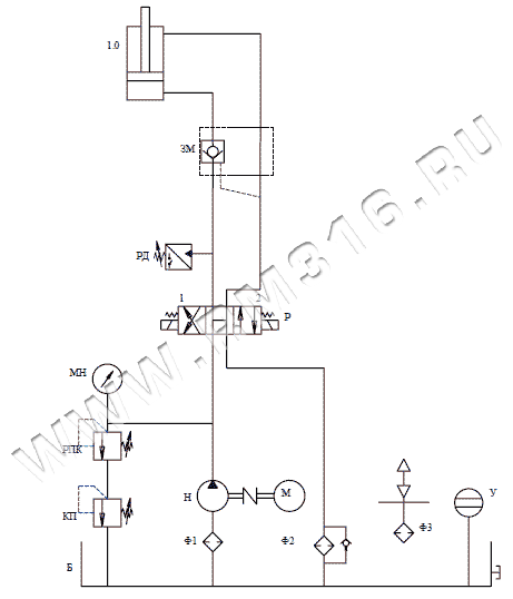 Обозначения на гидросхеме: