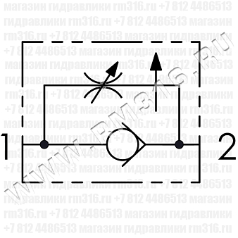 Присоедините порт 1 к линии нагнетания, а 2 к потребителю (например, к гидроцилиндру). Поток регулируется в направлении от 1 к 2. В обратном направлении – свободный поток.
