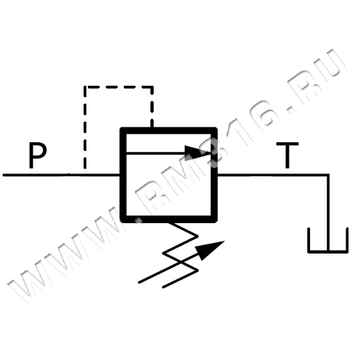 Когда давление в Р становится выше, чем давление настройки пружины предохранительного клапана, поток проходит напрямую через клапан в маслобак. Настройка пружины осуществляется вручную: по часовой стрелке – увеличение давления настройки, против – уменьшение. Настройка фиксируется гайкой. Настройка осуществляется только в определенном диапазоне (смотрите каталог).