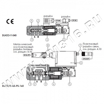 Встроенная электроника (6) с выполненной на заводе калибровкой обеспечивает высокие функциональные характеристики и взаимозаменяемость распределителей, облегчая процесс подключения и установки.