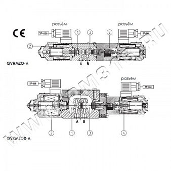 QVHMZO и QVKMZOR (Atos, Италия) - пропорциональные трехходовые клапаны прямого действия, обеспечивающими возможность независимого контроля давления и расхода (с компенсацией) в зависимости от электронных опорных сигналов.