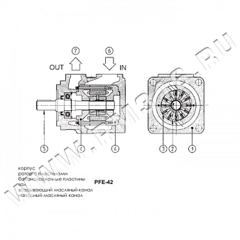 Новая модель PFE-*2 (Atos, Италия) - нерегулируемые пластинчатые насосы (число пластин - 12), картриджного исполнения (2) (3) со встроенным гидравлическим балансиром (4) для работы при высоком давлении, увеличенные сроки службы между сервисными обслуживаниями при еще более низком уровне шума по сравнению с PFE-*1.