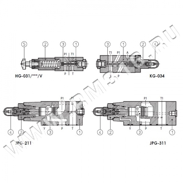 JPG-3 = ISO 4401 размер 25; расход до 300 л/мин; регулироемое давление до 210 бар.
