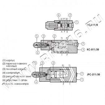 HC, KC, JPC (Atos, Италия) - двухлинейные компенсаторы давления для модульного монтажа с релейными и пропорциональными распределителями.