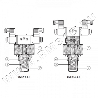 L I D * (Atos, Италия) - это распределители, установленные в 2-х линейном картридже, расположенном в стандартном отверстии и закрытом функциональным элементом (1), называемом "крышкой".