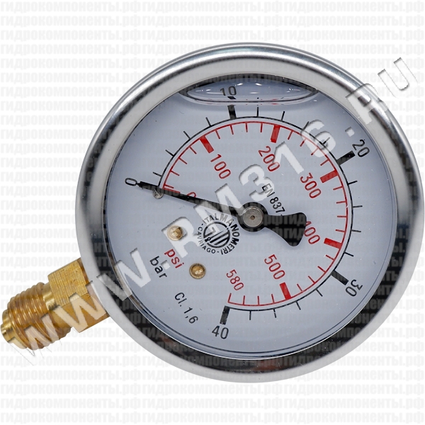 Купить манометр гидравлический 63 мм, 0 - 40 бар / 0 - 580 psi, радиальное (снизу) присоединение (italmanometri, италия)