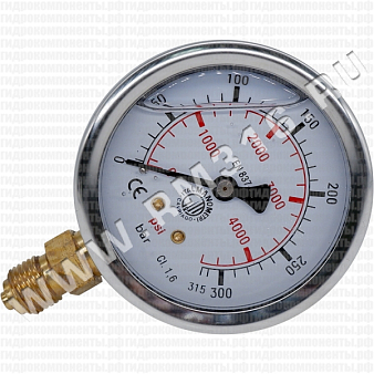 - МАНОМЕТР ГИДРАВЛИЧЕСКИЙ 63 ММ, 0 - 315 БАР / 0 - 4500 PSI, РАДИАЛЬНОЕ (СНИЗУ) ПРИСОЕДИНЕНИЕ (BART, ИТАЛИЯ)