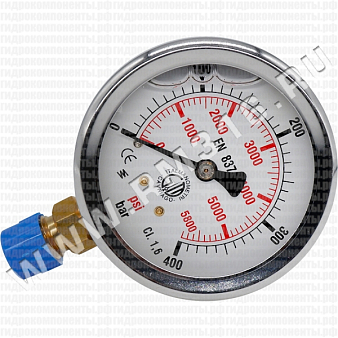 - МАНОМЕТР ГИДРАВЛИЧЕСКИЙ 63 ММ, 0 - 400 БАР / 0 - 6000 PSI, РАДИАЛЬНОЕ (СНИЗУ) ПРИСОЕДИНЕНИЕ (BART, ИТАЛИЯ)