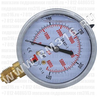 - МАНОМЕТР ГИДРАВЛИЧЕСКИЙ 63 ММ, 0 - 400 БАР / 0 - 5800 PSI, РАДИАЛЬНОЕ (СНИЗУ) ПРИСОЕДИНЕНИЕ (ITALMANOMETRI, ИТАЛИЯ)