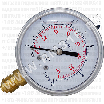 - МАНОМЕТР ГИДРАВЛИЧЕСКИЙ 63 ММ, 0 - 10 БАР / 0 - 150 PSI, РАДИАЛЬНОЕ (СНИЗУ) ПРИСОЕДИНЕНИЕ (DICSA, ИСПАНИЯ)
