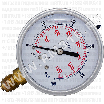 - МАНОМЕТР ГИДРАВЛИЧЕСКИЙ 63 ММ, 0 - 100 БАР / 0 - 1450 PSI, РАДИАЛЬНОЕ (СНИЗУ) ПРИСОЕДИНЕНИЕ (ITALMANOMETRI, ИТАЛИЯ)