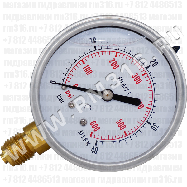 - МАНОМЕТР ГИДРАВЛИЧЕСКИЙ 63 ММ, 0 - 40 БАР / 0 - 580 PSI, РАДИАЛЬНОЕ (СНИЗУ) ПРИСОЕДИНЕНИЕ (ITALMANOMETRI, ИТАЛИЯ)