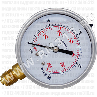 - МАНОМЕТР ГИДРАВЛИЧЕСКИЙ 63 ММ, 0 - 40 БАР / 0 - 600 PSI, РАДИАЛЬНОЕ (СНИЗУ) ПРИСОЕДИНЕНИЕ (DICSA, ИСПАНИЯ)