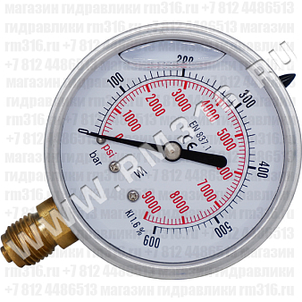 63R600.MGE | 63R600.MGE (аналог M635RL600) Манометр гидравлический виброустойчивый (глицериновый), 0-600 бар, 0-9000 psi, диаметр 63 мм, резьба 1/4" BSP, радиальное присоединение (снизу), без первичной поверки (Bart, Италия) | 3 995 руб | 12 |