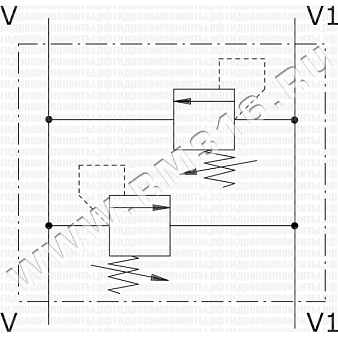 Подключите порты V и V1 к линии нагнетания или к гидроцилиндру / гидромотору, другие порты V и V1 — в обратном положении. Для предотвращения потерь давления рекомендуется установка на гидроцилиндре.